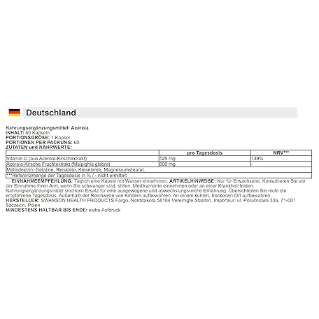 Sản phẩm Swanson - Acerola, 500mg | Natural Vitamin C and Antioxidant Support - 60 Capsules đang được bán với giá ưu đãi là $26.9121 tại nước Anh.