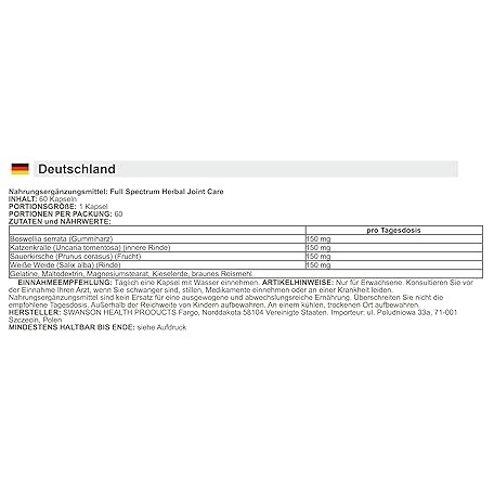 Sản phẩm Swanson - Full Spectrum Herbal Joint Care | Joint and Mobility Support - 60 Capsules đang được bán với giá ưu đãi là $25.2008 tại nước Anh.
