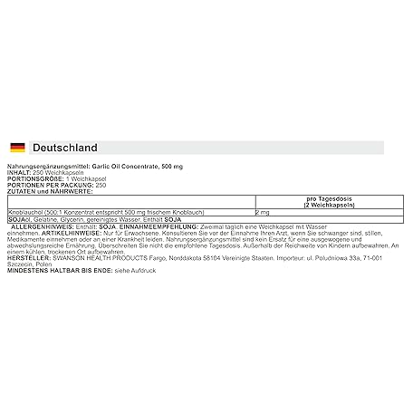 Sản phẩm Swanson - Garlic Oil Concentrate, 500mg | Heart Health and Immune Support - 250 Softgels đang được bán với giá ưu đãi là $27.5988 tại nước Anh.
