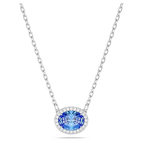 Swarovski Constella Pendant Necklace, Blue Oval Cut Centre Crystal with White Crystal Pavé, Rhodium Plated Chain, from the Constella Collection