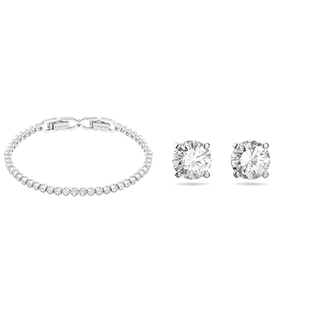 Swarovski Emily bracelet, Round cut, White, Rhodium plated & Attract stud earrings, Round cut, Medium, White, Rhodium plated