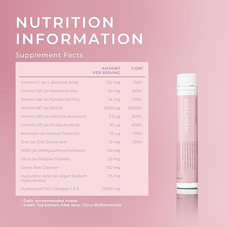 Thông tin sản phẩm Swedish Collagen Deluxe | 12,500 mg Hydrolysed Marine Collagen Liquid Supplement - 20 x 25 ml Daily Shots | Hyaluronic Acid, Biotin and Vitamin C for Healthy Hair, Skin, Nails and Joints | Sugar-Free