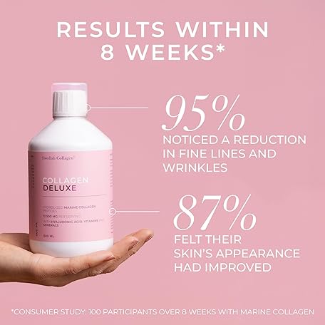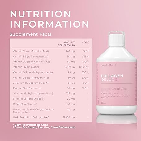 Sản phẩm Swedish Collagen Deluxe | 12,500 mg Hydrolysed Marine Collagen Liquid Supplement - 500 ml, 20 Day Supply | Hyaluronic Acid, Biotin and Vitamin C for Healthy Hair, Skin, Nails and Joints | Sugar-Free đang được bán với giá ưu đãi là $42.728 tại nước Anh.