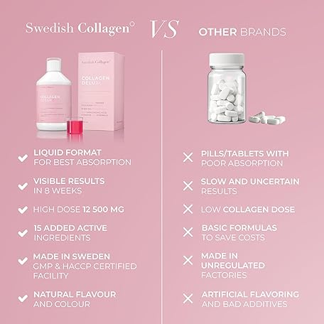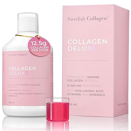 Thương hiệu Swedish Collagen là cái tên nổi tiếng được rất nhiều khách hàng trên thế giới chọn lựa. Với kiểu dáng đẹp mắt, sang trọng, sản phẩm Swedish Collagen Deluxe | 12,500 mg Hydrolysed Marine Collagen Liquid Supplement - 500 ml, 20 Day Supply | Hyaluronic Acid, Biotin and Vitamin C for Healthy Hair, Skin, Nails and Joints | Sugar-Free  là sự lựa chọn hoàn hảo nếu bạn đang tìm mua một món  cho riêng mình.