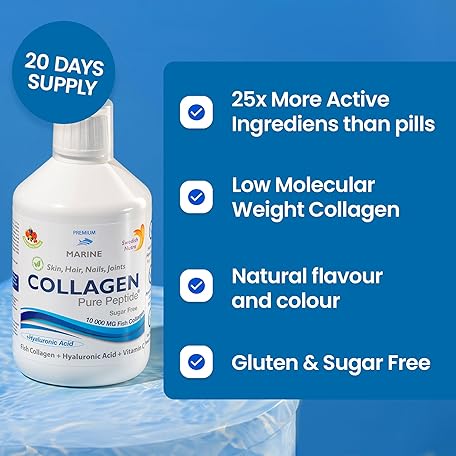 Sản phẩm Swedish Nutra Hydrolyzed Marine Collagen Liquid Supplement - Pack of 500 ml, 20 Day Supply | Pure Peptide and Vitamins for Healthy Hair, Skin, Nails and Joints I 100% Natural Berry Flavour đang được bán với giá ưu đãi là $25.07 tại nước Anh.