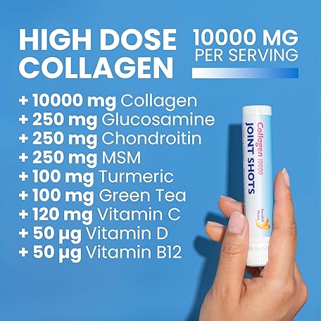 Thông tin sản phẩm Swedish Nutra - Joint Shots I 20 Day Supply I 10,000 mg Collagen Type I, II & III I Glucosamine, MSM, Chondroitin, Turmeric I 100% Natural Flavour I Sugar-Free