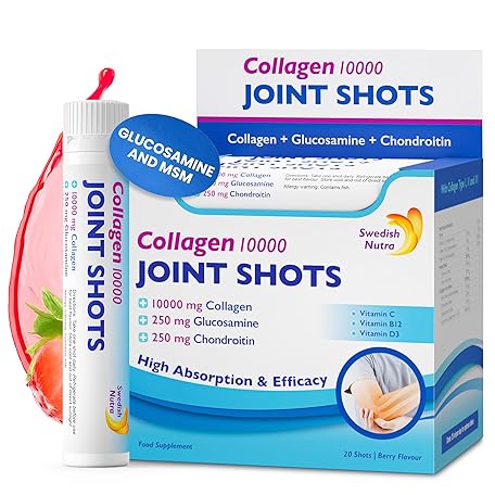 Sản phẩm Swedish Nutra - Joint Shots I 20 Day Supply I 10,000 mg Collagen Type I, II & III I Glucosamine, MSM, Chondroitin, Turmeric I 100% Natural Flavour I Sugar-Free đang được bán với giá ưu đãi là $41.5072 tại nước Anh.