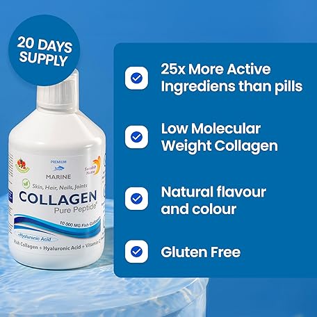 Sản phẩm Swedish Nutra Liquid Marine Collagen 10000mg - Pack of 500ml I Hydrolyzed Collagen Peptides (Type I & III) I Minimize Fine Lines, Wrinkles I Hyaluronic Acid, Biotin, Vitamin C - 20 Day Supply đang được bán với giá ưu đãi là $26.7704 tại nước Anh.