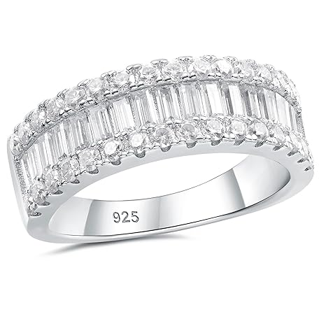 • SweetJew Womens Moissanite Wedding Band 1.2ct Emerald Cut D Color VVS1 Clarity 925 Sterling Silver Eternity Anniversary Promise Ring for Her Size 5-10