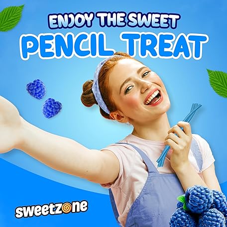 Thông tin sản phẩm Sweetzone Blue Raspberry Pencils Tub, Pencil Sweets, 100 pc, Halal Sweet, Wine gums, American Gum, British Sweets, Sweet Pie, Licorice Liquorice Allsorts, Irresistible for Candy Lovers