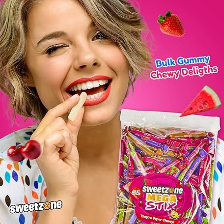 Sản phẩm Sweetzone Mega Stix, 1kg Assorted Fruity Flavours Bag of Sweets - Enjoy the Burst of Real Fruit Juices with these Chewy Sweets Fruity Treats Sticks - Halal Candies, Perfect for Kids and Candy Lovers đang được bán với giá ưu đãi là $14.5406 tại nước Anh.