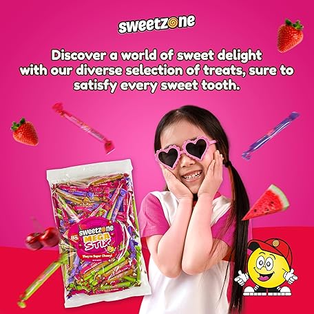 Thông tin sản phẩm Sweetzone Mega Stix, 1kg Assorted Fruity Flavours Bag of Sweets - Enjoy the Burst of Real Fruit Juices with these Chewy Sweets Fruity Treats Sticks - Halal Candies, Perfect for Kids and Candy Lovers
