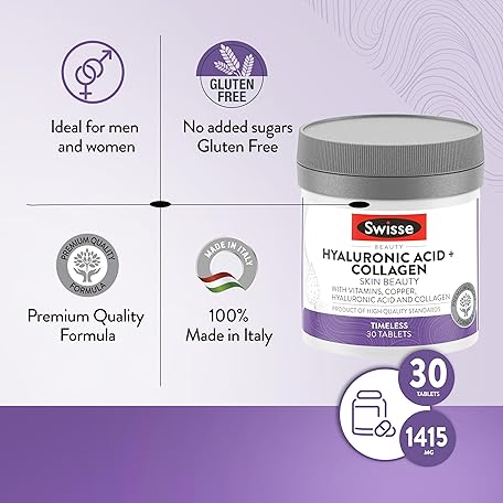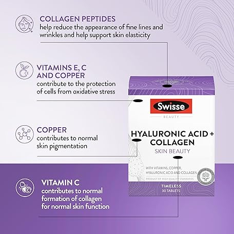 Sản phẩm SWISSE Hyaluronic Acid and Collagen - Collagen Supplements for Women & Men with Vitamin C & E, Copper, 30 Tablets - Protection from Oxidative Stress & Wrinkle Reducing Supplement - Made in Italy đang được bán với giá ưu đãi là $61.7158 tại nước Anh.