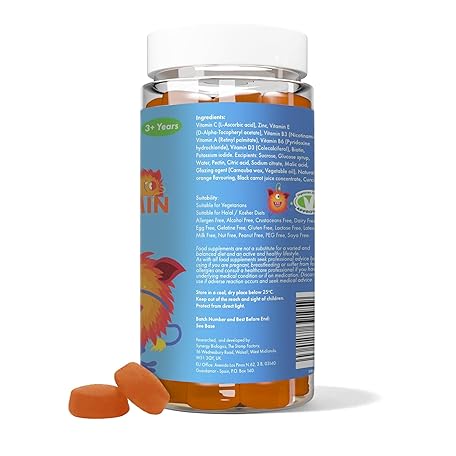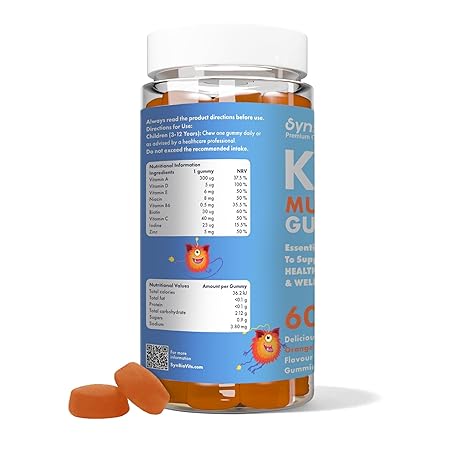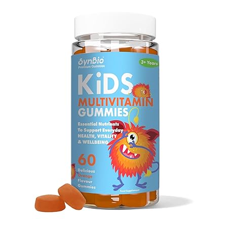 Thông tin sản phẩm SynBio Kids Multivitamin Gummies | Daily Vitamins for Children Aged 3-12 | with Vitamin C, D, Zinc & More | Gelatin Free, Vegetarian, Halal & Kosher | 60 Tasty Orange Flavour Gummies