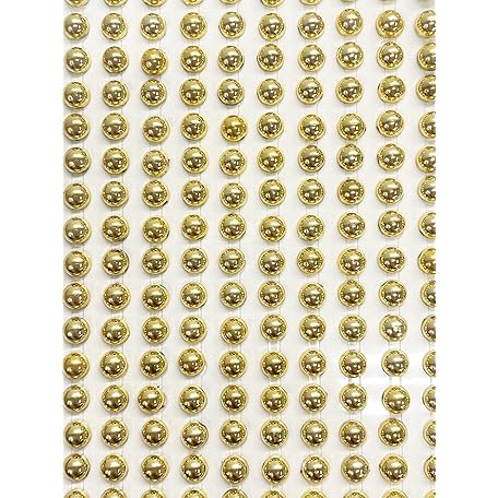 Syntego 200 Self Adhesive Pearls 6mm Beautiful Small Round Pearl Stick On Adhesive Beads Embellishment (Metallic Gold)