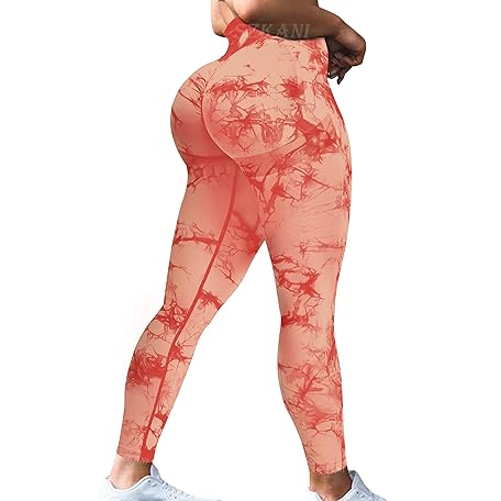 • SZKANI Womens Ruched Butt Lifting High Waisted Yoga Pants Tummy Control Workout Leggings Textured Tights, (D-tie Dye)-orange, Large