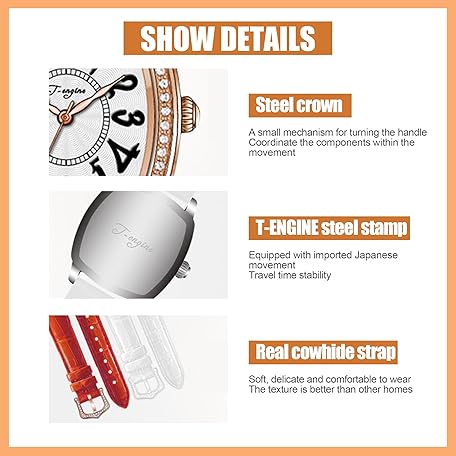 Thương hiệu T-ENGINE là cái tên nổi tiếng được rất nhiều khách hàng trên thế giới chọn lựa. Với kiểu dáng đẹp mắt, sang trọng, sản phẩm T-ENGINE Luxury Women's Watch with Genuine Leather Strap, Diamond Inlay | Fashion Vintage Design là sự lựa chọn hoàn hảo nếu bạn đang tìm mua một món cho riêng mình.