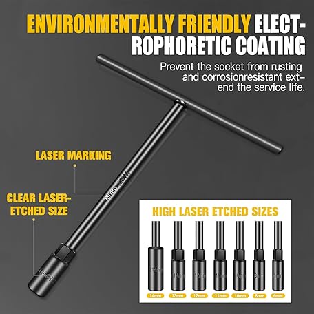 Thông tin sản phẩm T-Handle Metric Socket Wrench Set 7Pack(6mm, 8mm, 10mm, 11mm, 12mm, 13mm, 14mm) 6-Point Chrome Vanadium Steel with Laser Marking for Motorcycle Bicycle Car Repair