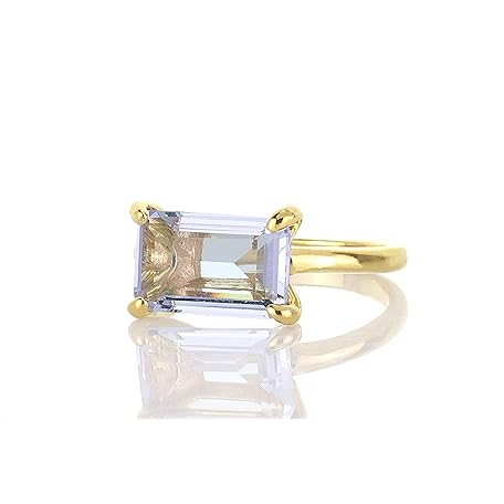 Tanzanite Ring - Sophisticated Gem Rectangle Ring - Wedding, Engagement, Fashion Gem Rings for Women - Artisan Custom Handmade Jewelry for Ladies - with Box