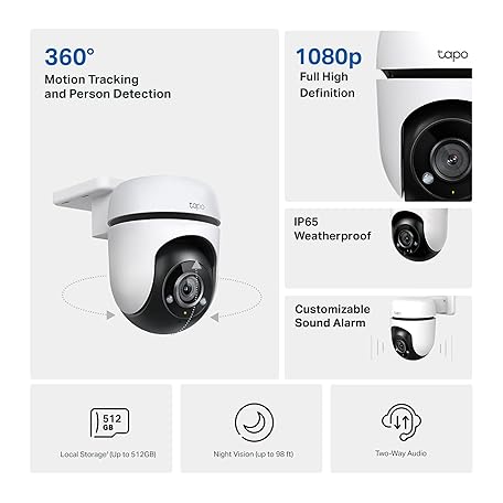 Thông tin sản phẩm Tapo TP-Link C500 Outdoor Wi-Fi Security Camera, 360° FHD 1080P with Night Vision, Two-Way Audio, Cloud Video Recording, Works with Alexa