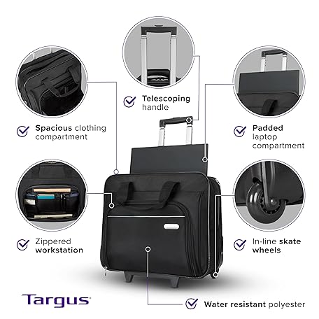 Thông tin sản phẩm Targus Laptop Roller Bag, Fits Laptop up to 16", Metro Roller Bag Designed for Business Professional Travel and Commuter, Water-resistant - Black