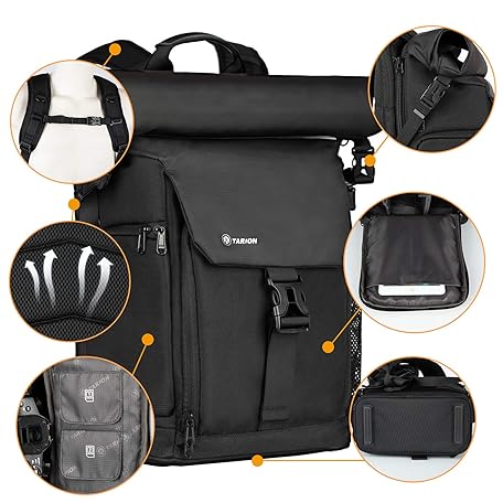 Sản phẩm TARION Camera Backpack Rolltop Waterproof Camera Backpack Camera Bag DSLR Backpack with 15.6 Inch Laptop Sleeve and Rain Cover đang được bán với giá ưu đãi là $57.6392 tại nước Anh.