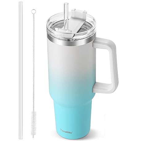 TaroKitc 40 oz Tumbler with Handle | Stainless Steel Insulated Travel Mug with Lids and Straw | Iced Coffee Cup | Keeps Cold for 34 Hours | Dishwasher Safe, BPA Free | Clear Sky