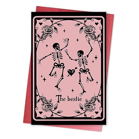 Tarot Themed Bestie Birthday Card, Spooky Skeleton Friendship Gift for Bestie, Gothic Galentine's Day Gift, Witchy Halloween Card for Best Friend