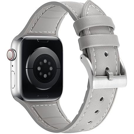 Tasikar Compatible with Apple Watch Strap 41mm 40mm 38mm, Genuine Leather with Soft Silicone Hybrid Design Sport Band Compatible for Apple Watch Series 9 8 7 6 5 4 3 2 SE - (38/40/41mm, Gray)