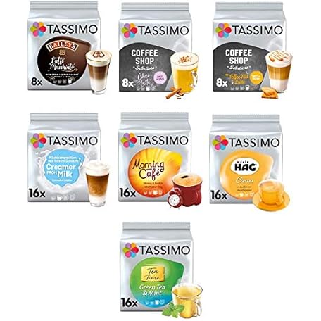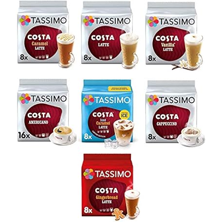 Thông tin sản phẩm Tassimo Coffee, Tea, Chocolate Pods. Pick Any 5 Packs from 50+ Blends Including Kenco, Costa, Jacobs, Hot Chocolate, Chai latte, Baileys, Cadbury, Milka, Cafe Hag and More.