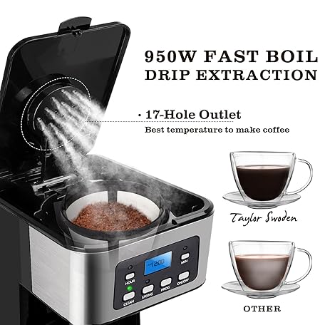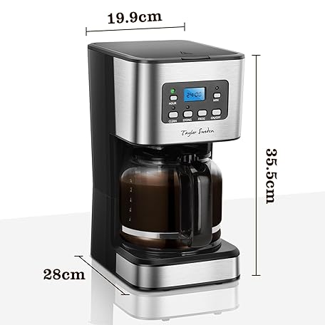 Thông tin sản phẩm Taylor Swoden Filter Coffee Machine, Drip Coffee Maker with Programmable 24hr Timer, Keep Warm & Anti-Drip, Reusable Filter Fast Brewing - Darcy 950W 1.5 L Black Stainless Steel