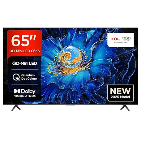 TCL 65C6KS-UK QD-Mini LED TV, 4K HDR Premium, Powered by Google TV (Dolby Vision & Atmos, Onkyo 2.1 Sound System, Hands-Free Voice Control, Apple AirPlay 2 & Alexa,2025 New Model)