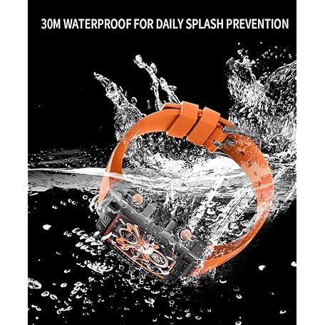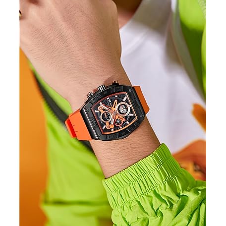 Thông tin sản phẩm TEARTRACE Mens Watches Analog Waterproof Fashion Date Wrist Watch, Skeleton Tonneau Watches for Men with Chronograph,Ideal for Sports Enthusiasts & Daily Wear - Perfect Gifts for Men, Orange, sports