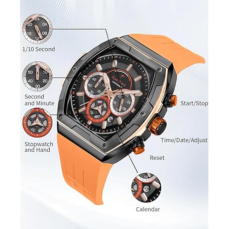 TEARTRACE Watches for Men Luxury Business Waterproof Calendar Leather Strap Digital Chronograph Analog Wristwatch