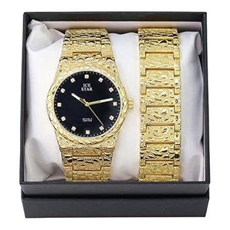 Sản phẩm Techno Pave Men's 45mm Nugget Design Watch & Bracelet Set, Diamond Accent Dial đang được bán với giá ưu đãi là $44.9625 tại nước Anh.