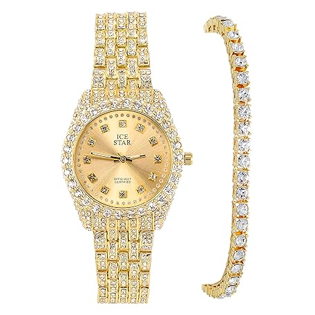 Techno Pave Women's Elegant 32mm Fully Iced Out Watch & Matching Bracelet Sets