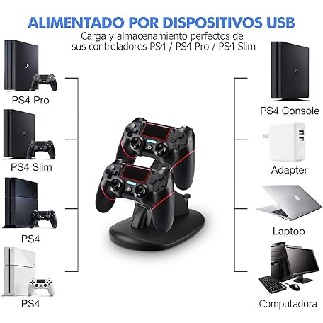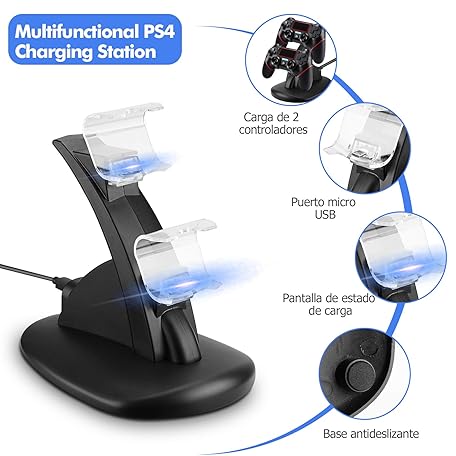 Thông tin sản phẩm TECHVIDA PS4 Controller Charger with Base and Stand, Fast Charging Station Dual USB USB Charger with LED Indicator Stand for PS4 Controllers for Sony Playstation 4/PS4/PS4 Pro/PS4 Slim Wireless