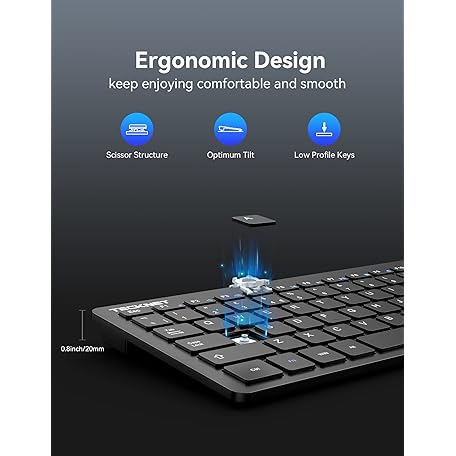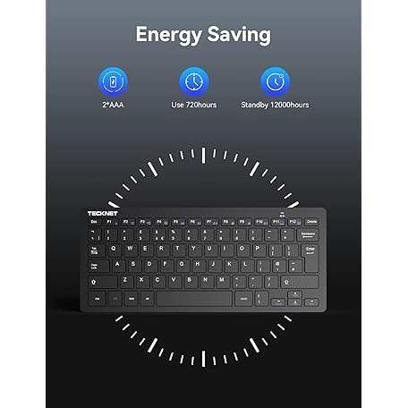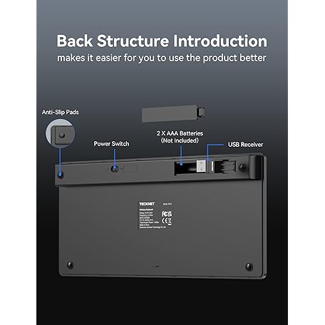 Thông tin sản phẩm TECKNET 2.4G Wireless Keyboard For Windows/Chrome OS, UK Layout Compact Mini Keyboards, Small Silent Whisper-Quiet Keyboard with 12 months Battery Life (Black)