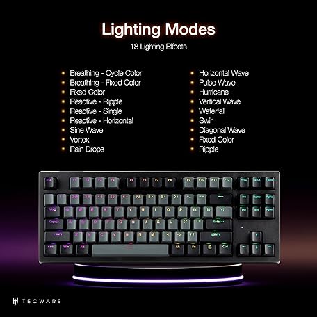 Thương hiệu TECWARE là cái tên nổi tiếng được rất nhiều khách hàng trên thế giới chọn lựa. Với kiểu dáng đẹp mắt, sang trọng, sản phẩm TECWARE ELITE Phantom+ 87-Key US Layout RGB Wireless/BT5.0 Mechanical Keyboard (Black) Wraith Red Switch (Prelubed, 45g Linear) Per Key Colour and Lighting là sự lựa chọn hoàn hảo nếu bạn đang tìm mua một món cho riêng mình.