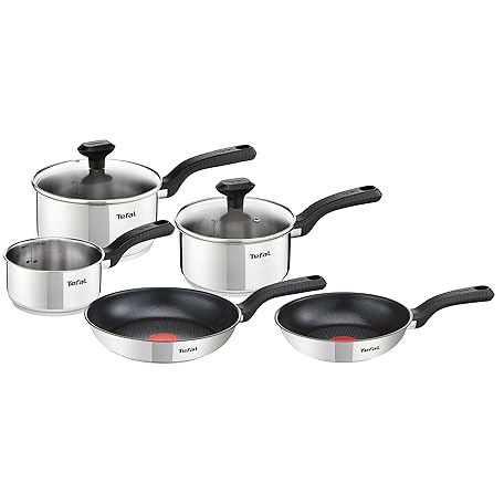 Sản phẩm Tefal 5 Piece, Comfort Max, Stainless Steel, Pots and Pans, Induction Set & Comfort Max Stainless Steel Non-stick Wok, 28 cm - Silver đang được bán với giá ưu đãi là $107.1143 tại nước Anh.