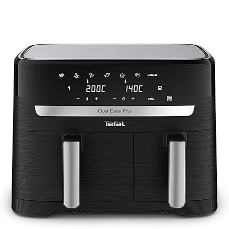 Thông tin sản phẩm Tefal Easy Fry Dual Zone Digital Air Fryer, 2 Drawers, 8.3L, 8in1, Air Fry, Extra Crisp, Roast, Bake, Reheat, Dehydrate, 6 Portions, Non-Stick, Dishwasher Safe Baskets, Black & Metal EY901840