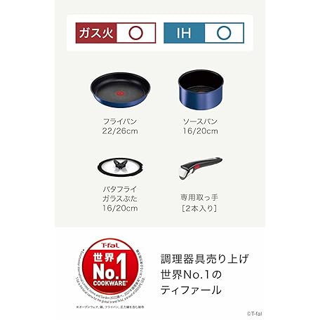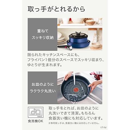 Thông tin sản phẩm Tefal L77998 Tifal Handle Removable Pot Frying Pan Set, 8-Piece Set, Compatible with IH Gas Fire, Ingenio Neo IH Blue Marquise Unlimited Non-Stick Blue
