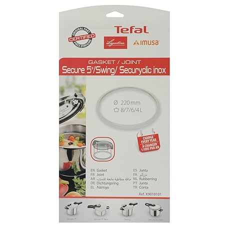 Thông tin sản phẩm Tefal P2530738 Secure 5 Neo Stainless Steel Pressure Cooker, 6 L, Induction, Silver & X9010101 Sealing Ring 8/7/6/4L