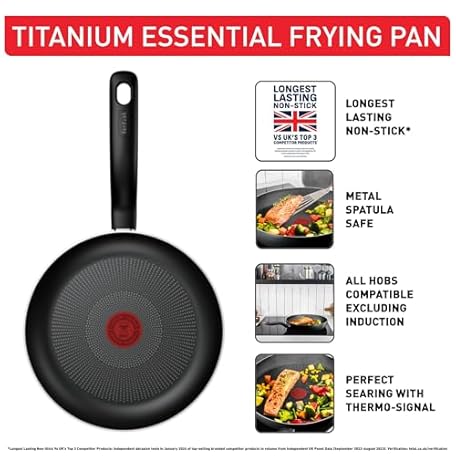 Thông tin sản phẩm Tefal Titanium Essential Frying Pan 20 cm, Non-Stick Coating, Metal Safe, Compatible with All Hobs Except Induction, Flawless Glide, Everyday Use, B9410244