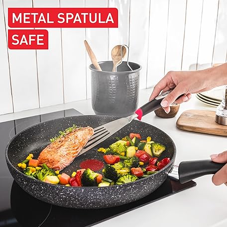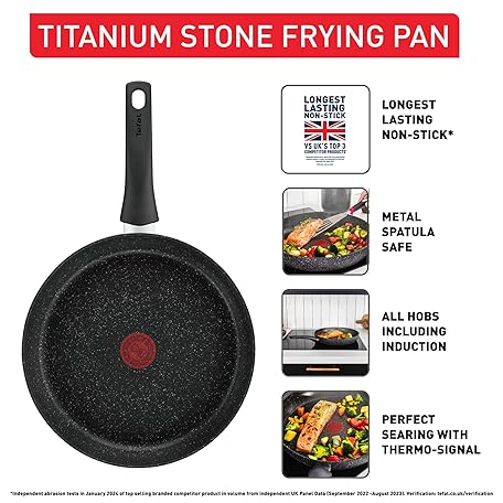 Thông tin sản phẩm Tefal Titanium Stone Frying Pan 20 cm, High-Performance Non-Stick Durable Coating, Metal Safe, All Hobs Including Induction, Thermo-Signal, Black, E1050245