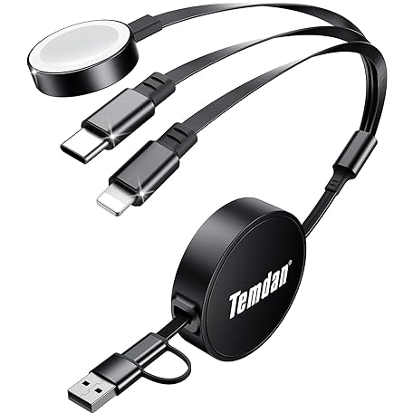 Temdan for Retractable Multi Charging Cable, 3 in 2 USB C Cable for Apple Watch Charger/USB C/Lightning, Retractable Car Charger for Multi Travel Essentials for iWatch &iPhone 17-12