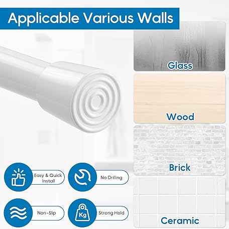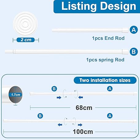 Thông tin sản phẩm Tension Rod for Curtains 68-100cm Shower Curtain Rod White Spring Rod Extendable Curtain Pole No Drill Tension Rod Shower Curtain Poles for Clothes,Windows,Cupboard
