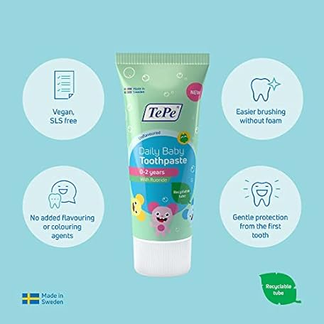 Thông tin sản phẩm TePe Daily Baby Toothpaste, unflavoured, 0-2 Years, Gentle Everyday Fluoride Toothpaste for Babies to Prevent Cavities, Age-Appropriate Fluoride Level (Pack of 2)