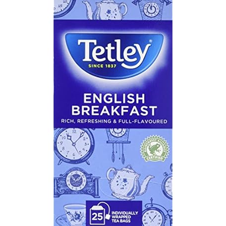 Sản phẩm Tetley English Breakfast Black Tea Bags - Strong & Refreshing Morning Brew - Premium Blend with Assam & African Teas - Rainforest Alliance Certified - 25 Individually Wrapped Teabags (1 Pack) đang được bán với giá ưu đãi là $2.8558 tại nước Anh.