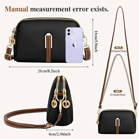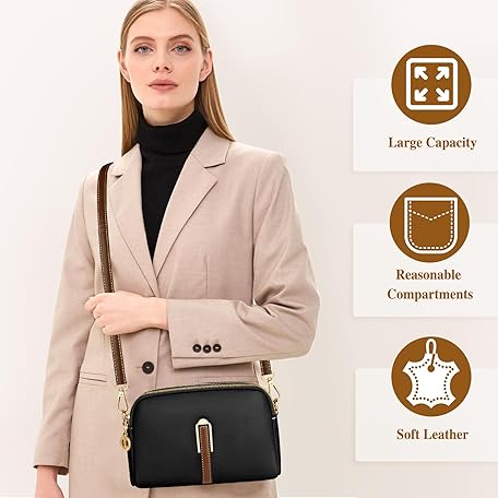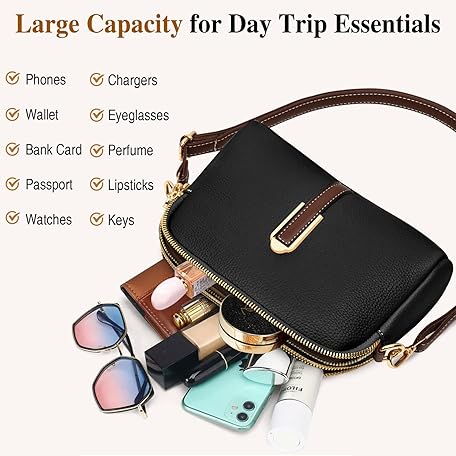 Thông tin sản phẩm TEUEN Small Crossbody Bag for Women, Leather Handbags,Ladies Phone Bag with Adjustable Wide Strap, Fashion Shoulder Bags with Zip for Shopping Travelling Work City Walks